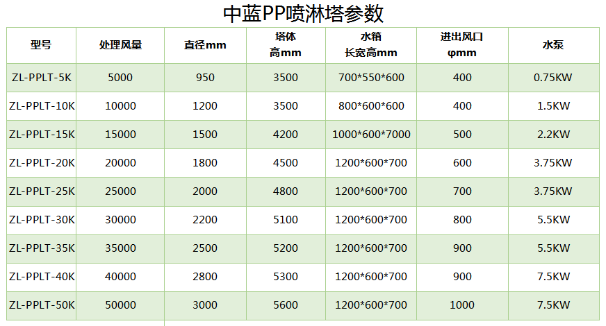五、酸雾处理塔设备型号及相关参数: